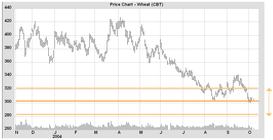 原資産の小麦先物価格は302.7セントで、今のところトレンドは判断しにくいねぇ。