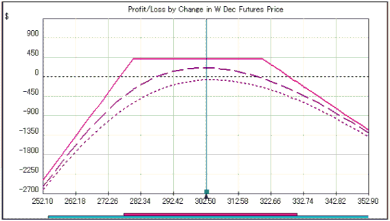 前述の例と同じく、シカゴの小麦先物オプションの例で考えてみる。